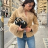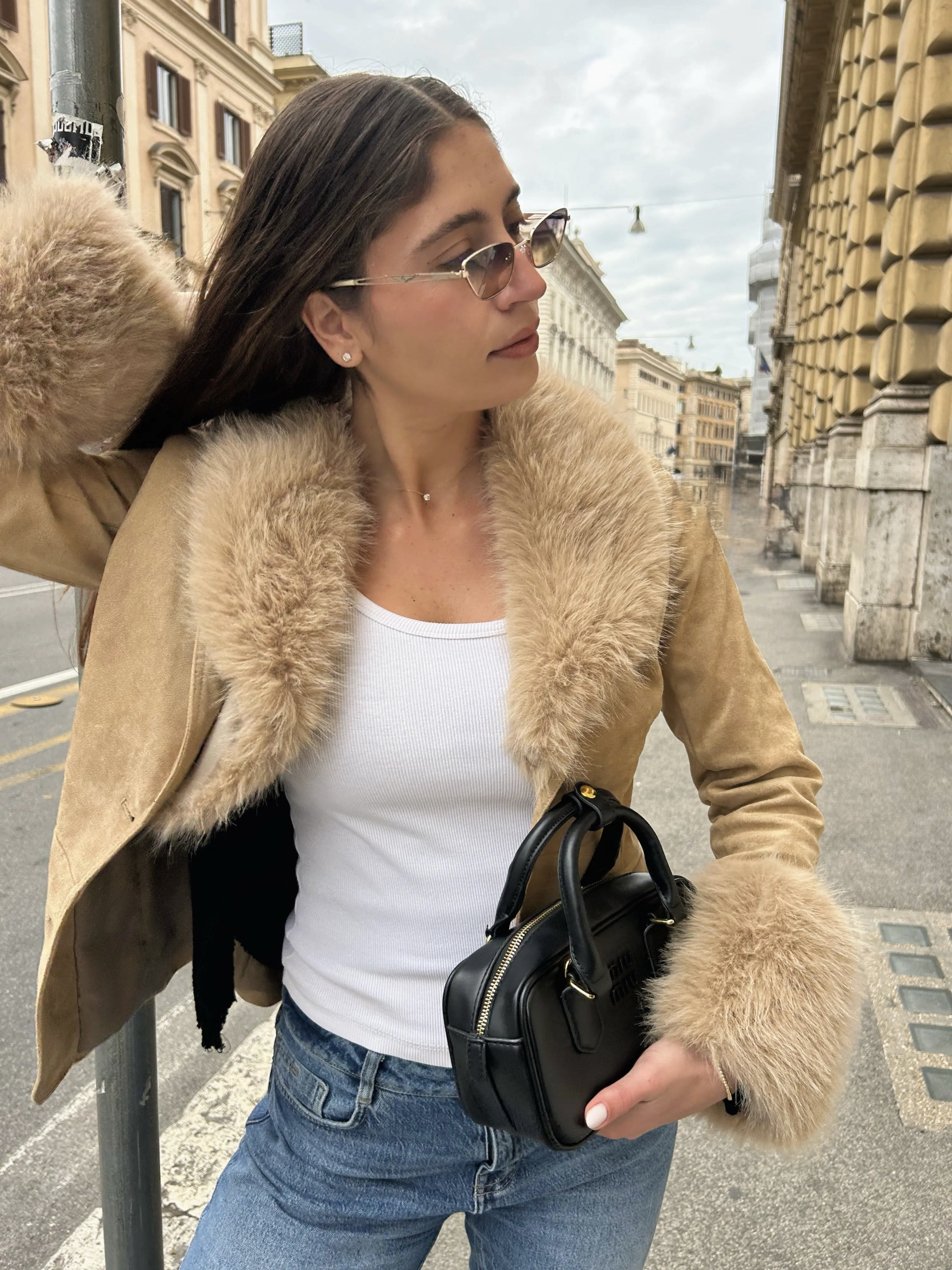 פרווה בצווארון ובשרוולים שניתנת להורדה דרך כפתורים